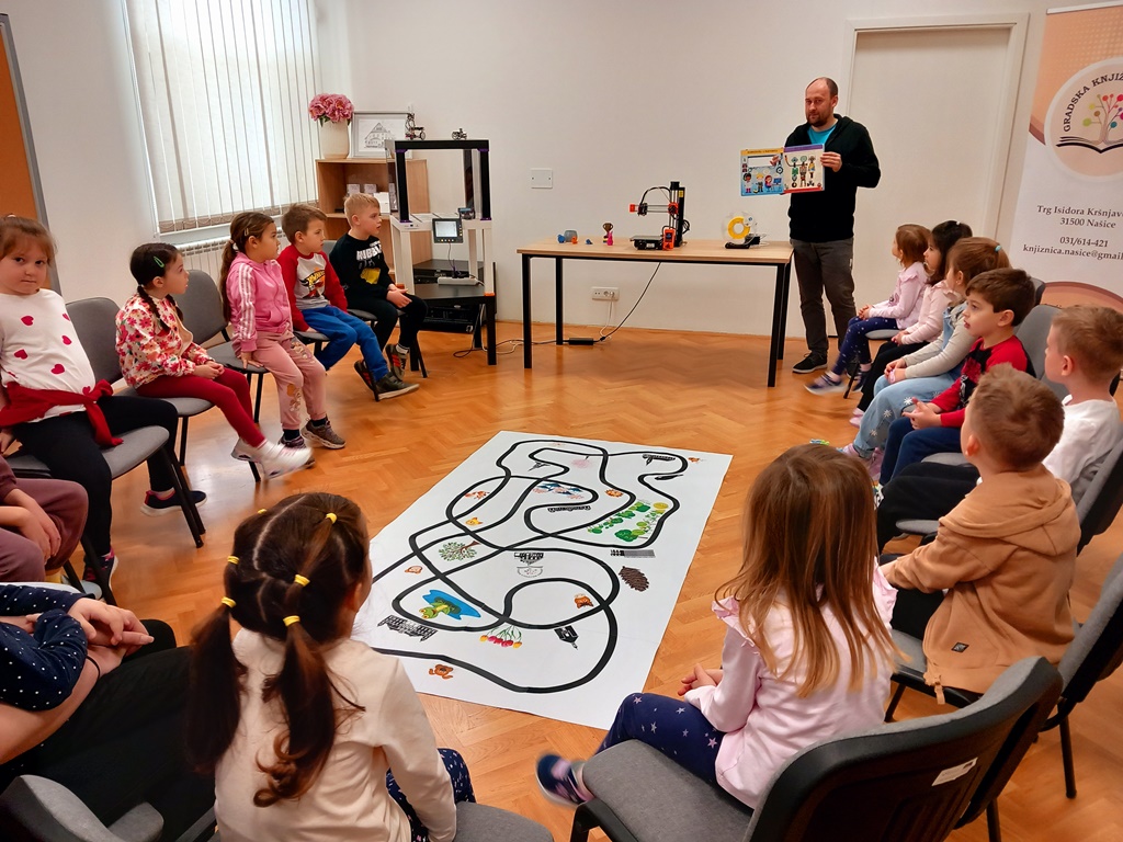 „micro: Maqueen“. Uz robote upoznao ih je s 3D printerom. Na zabavnoj karti Grada Našica